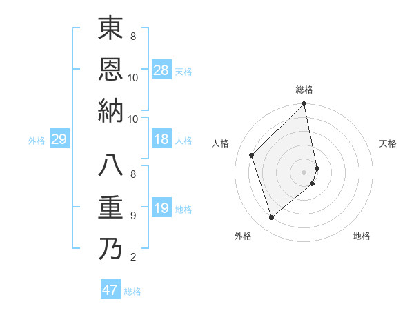 東恩納 八重乃さんを姓名の画数から五運を鑑定