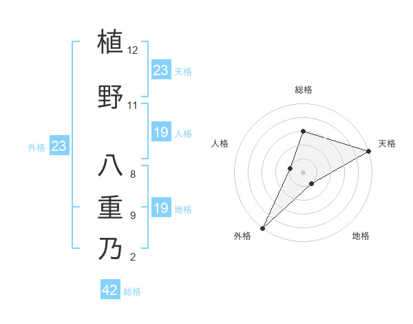 植野 八重乃さんを姓名の画数から五運を鑑定