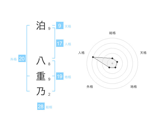 泊 八重乃さんを姓名の画数から五運を鑑定