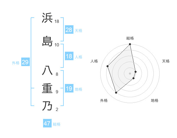 浜島 八重乃さんを姓名の画数から五運を鑑定