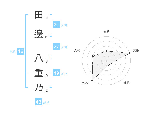 田邊 八重乃さんの総格は43画の2点!