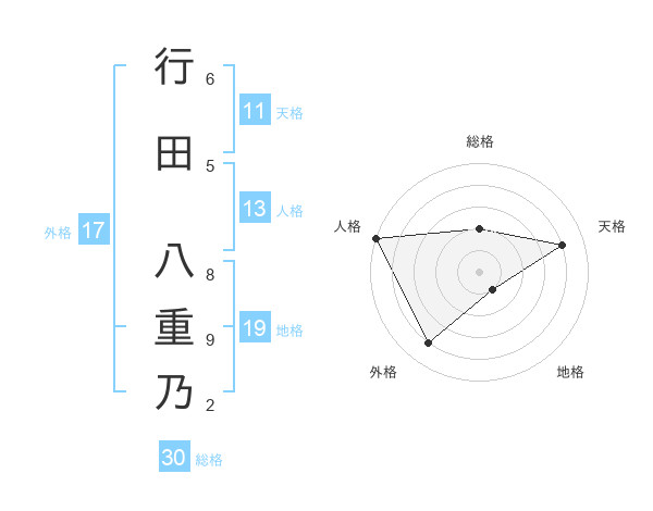 行田 八重乃さんを姓名の画数から五運を鑑定