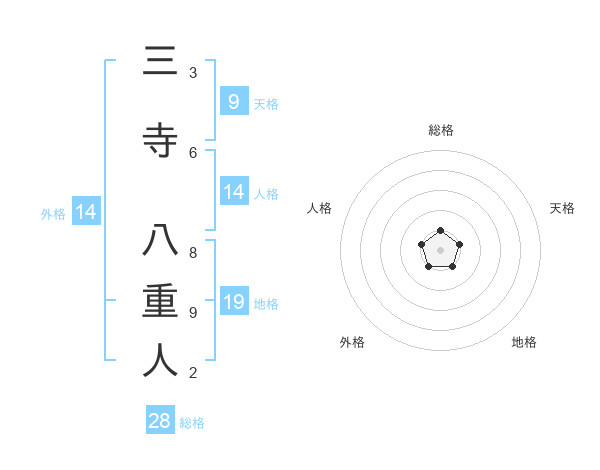 三寺 八重人さんを姓名の画数から五運を鑑定