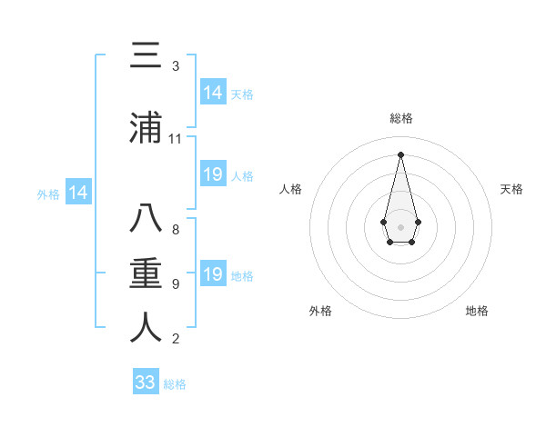 三浦 八重人さんを姓名の画数から五運を鑑定