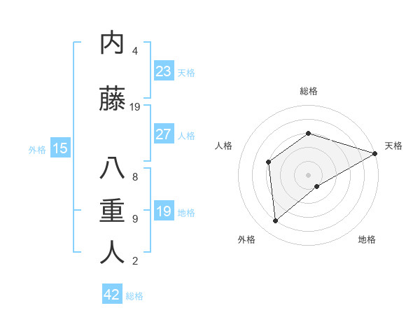内藤 八重人さんの天格は23画の5点!