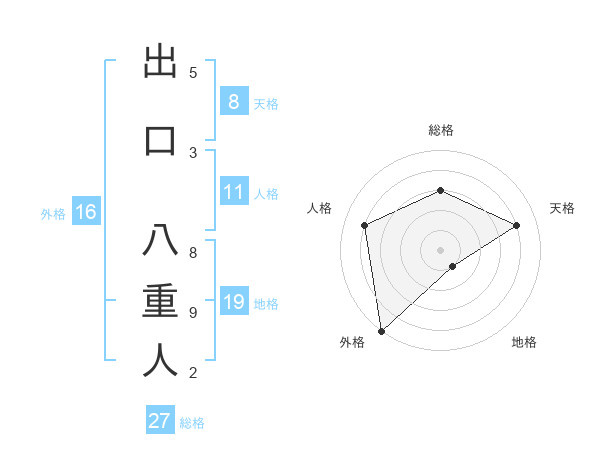 出口 八重人さんの総格は27画の3点!