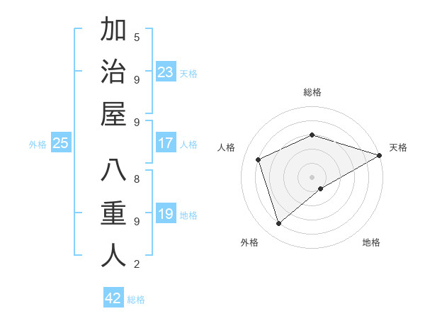 加治屋 八重人さんを姓名の画数から五運を鑑定