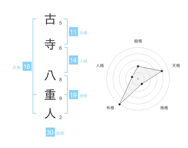 古寺 八重人さんを姓名の画数から五運を鑑定
