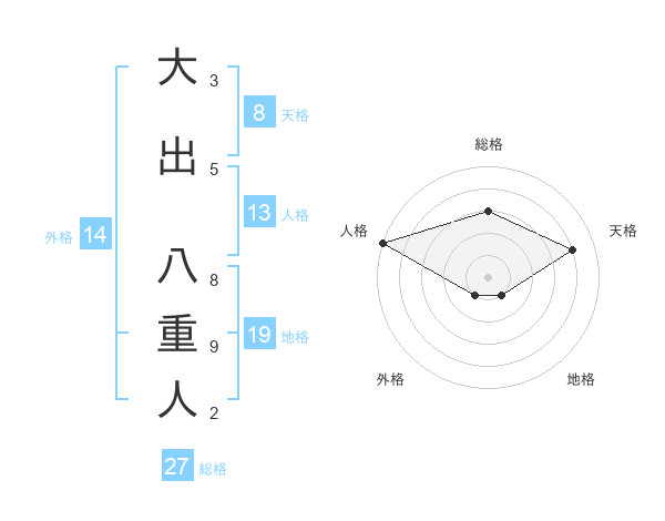 大出 八重人さんの総格は27画の3点!