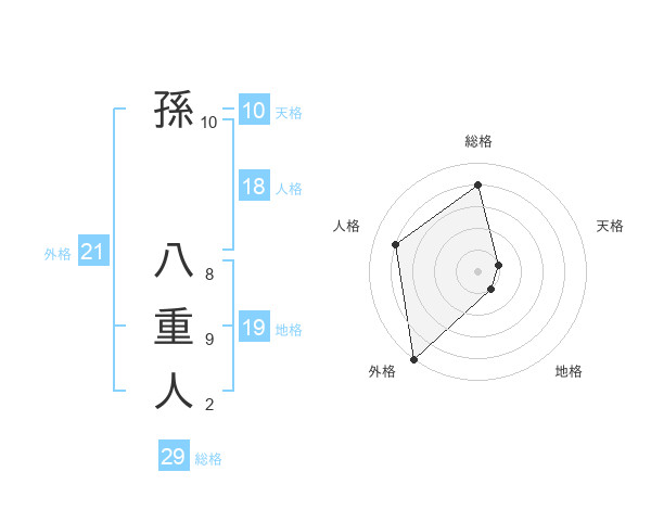 孫 八重人さんの総格は29画の4点!
