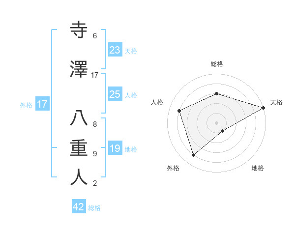 寺澤 八重人さんを姓名の画数から五運を鑑定