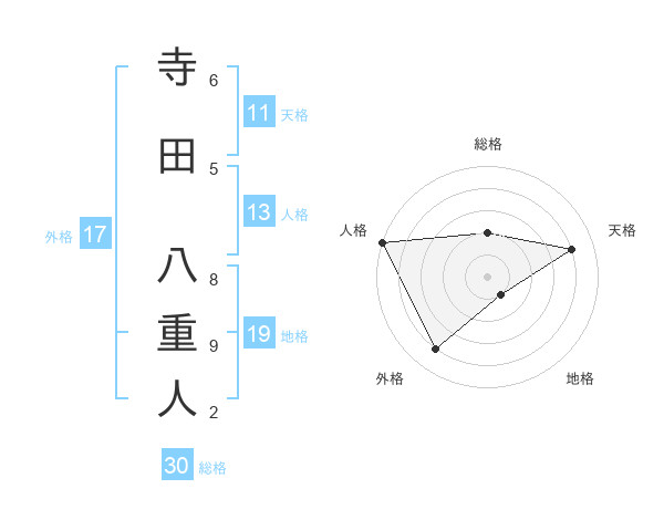 寺田 八重人さんを姓名の画数から五運を鑑定