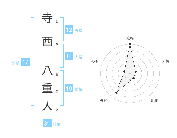 寺西 八重人さんを姓名の画数から五運を鑑定