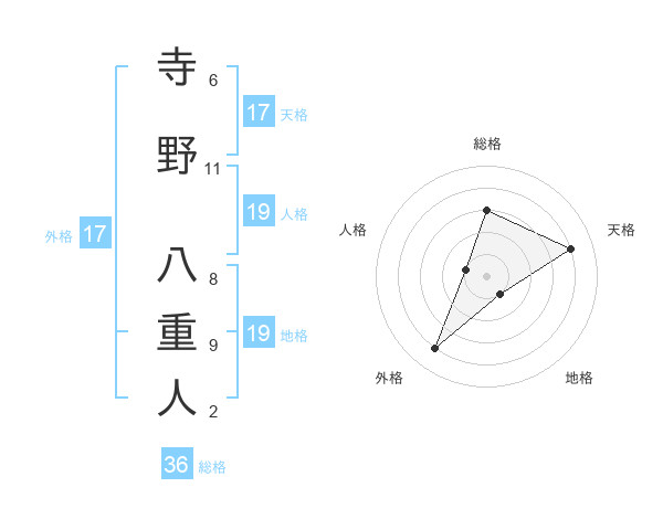 寺野 八重人さんを姓名の画数から五運を鑑定