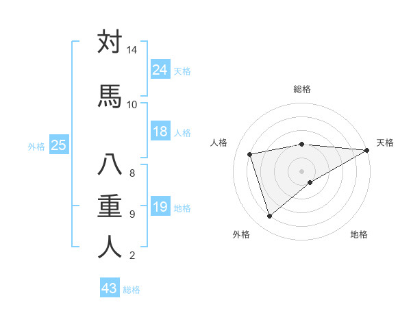 対馬 八重人さんを姓名の画数から五運を鑑定