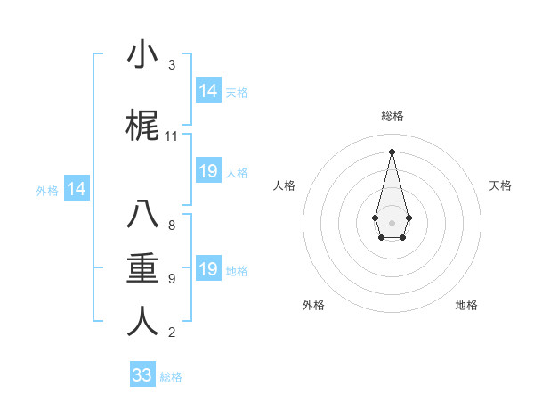 小梶 八重人さんを姓名の画数から五運を鑑定