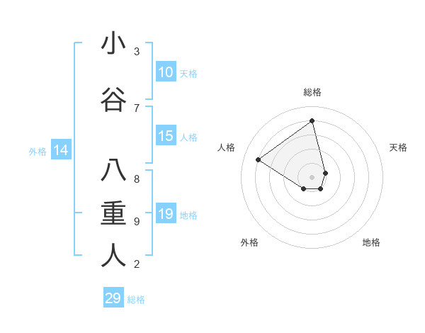 小谷 八重人さんの総格は29画の4点!