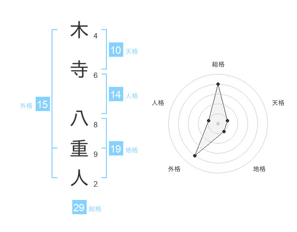 木寺 八重人さんを姓名の画数から五運を鑑定