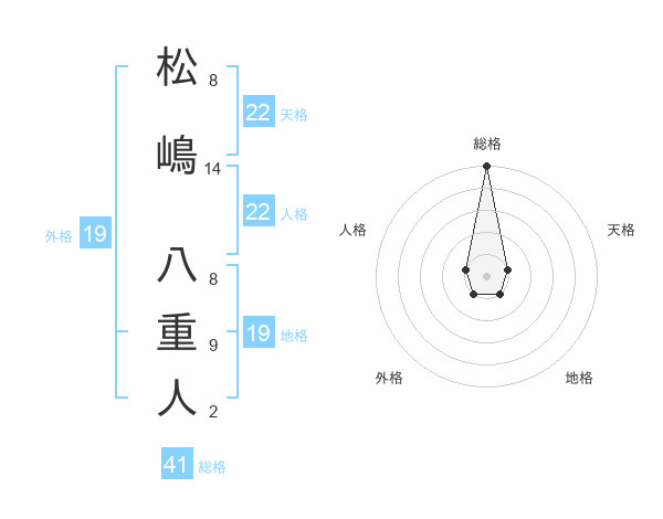 松嶋 八重人さんを姓名の画数から五運を鑑定