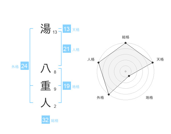 湯 八重人さんの総格は32画の5点!