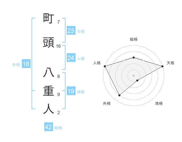 町頭 八重人さんを姓名の画数から五運を鑑定