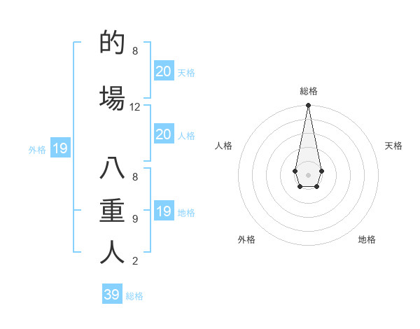的場 八重人さんの天格は20画の1点!