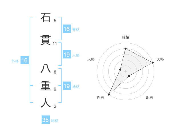 石貫 八重人さんを姓名の画数から五運を鑑定