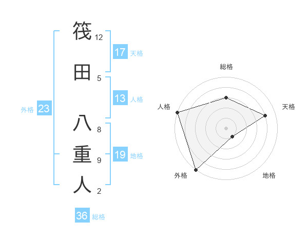 筏田 八重人さんの外格は23画の5点!