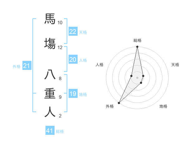 馬塲 八重人さんの外格は21画の5点!