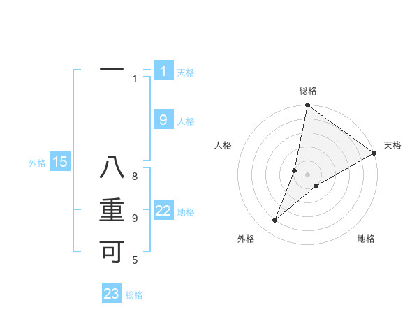 一 八重可さんの外格は15画の4点!