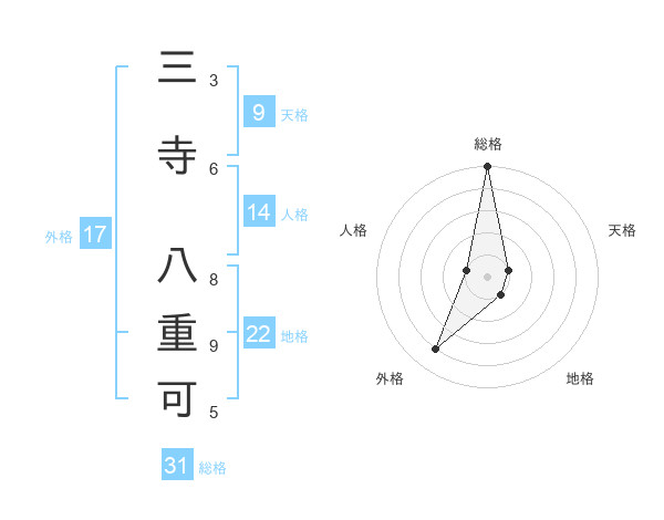三寺 八重可さんの総格は31画の5点!
