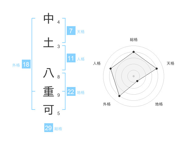 中土 八重可さんの総格は29画の4点!