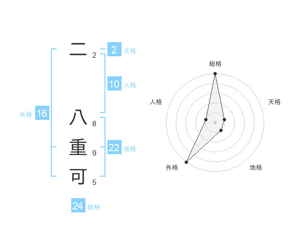 二 八重可さんの外格は16画の5点!