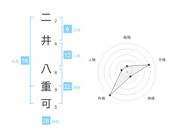 二井 八重可さんの総格は28画の1点!