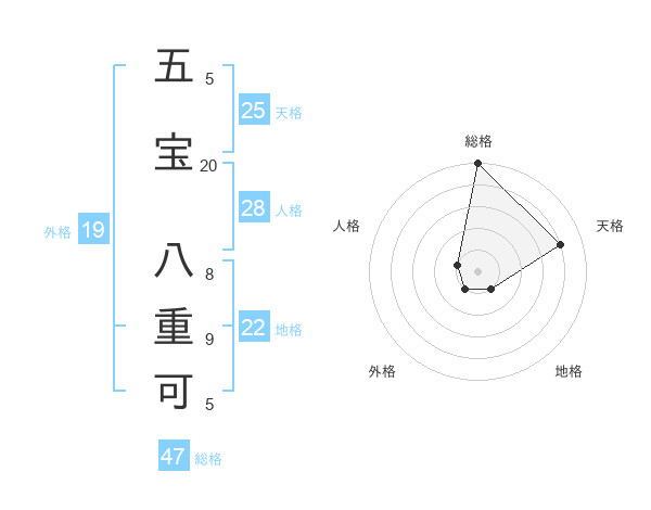 五宝 八重可さんを姓名の画数から五運を鑑定