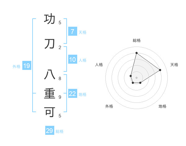功刀 八重可さんを姓名の画数から五運を鑑定