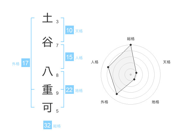 土谷 八重可さんを姓名の画数から五運を鑑定