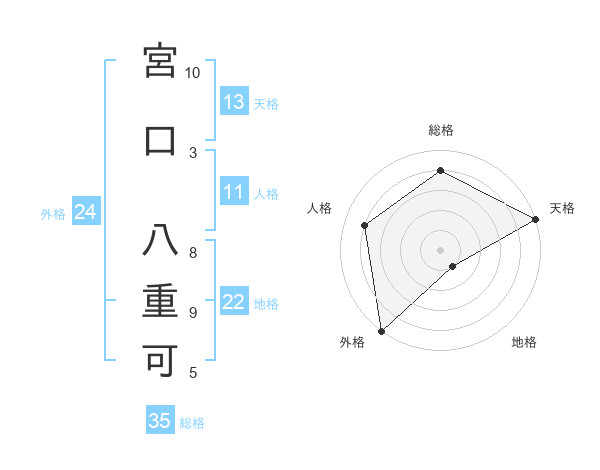 宮口 八重可さんを姓名の画数から五運を鑑定