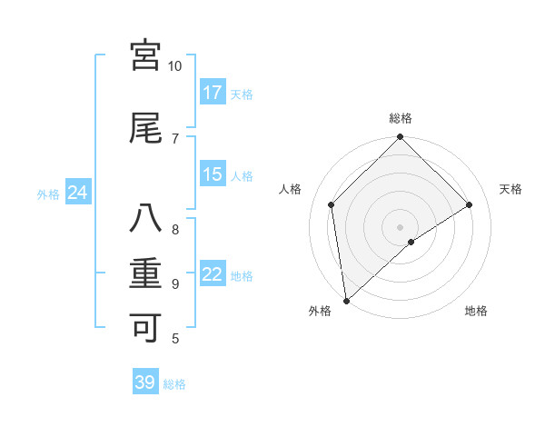 宮尾 八重可さんの総格は39画の5点!