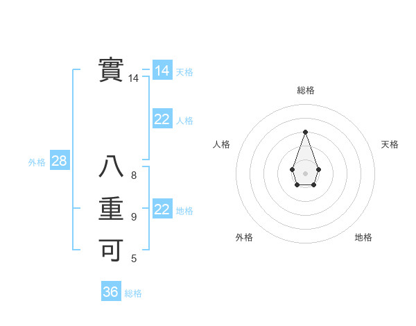 實 八重可さんの地格は22画の1点!