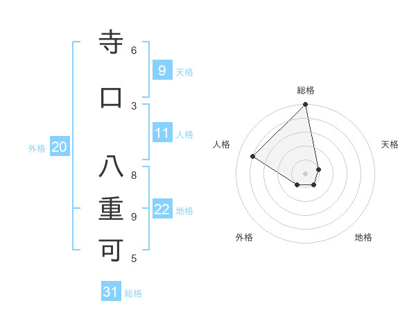 寺口 八重可さんの総格は31画の5点!