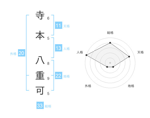 寺本 八重可さんの総格は33画の4点!