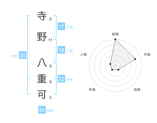 寺野 八重可さんの総格は39画の5点!