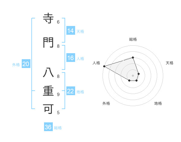 寺門 八重可さんを姓名の画数から五運を鑑定