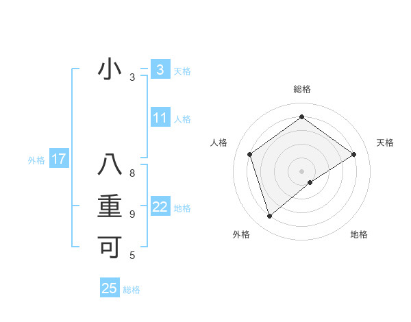 小 八重可さんの総格は25画の4点!