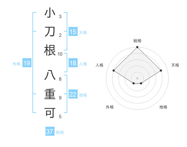 小刀根 八重可さんを姓名の画数から五運を鑑定
