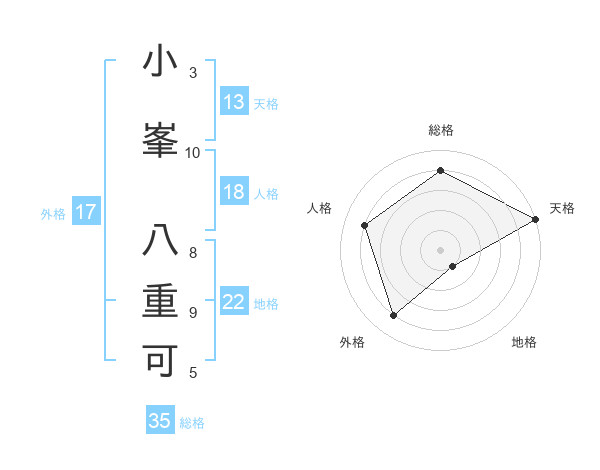 小峯 八重可さんの天格は13画の5点!