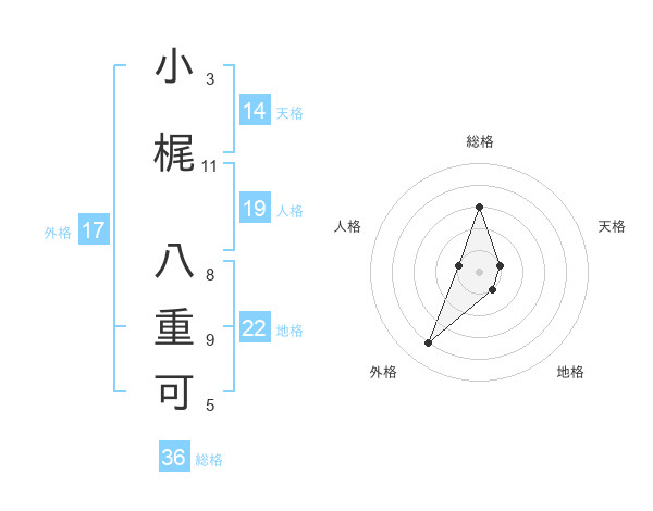 小梶 八重可さんの外格は17画の4点!