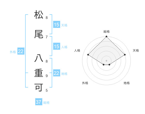 松尾 八重可さんを姓名の画数から五運を鑑定