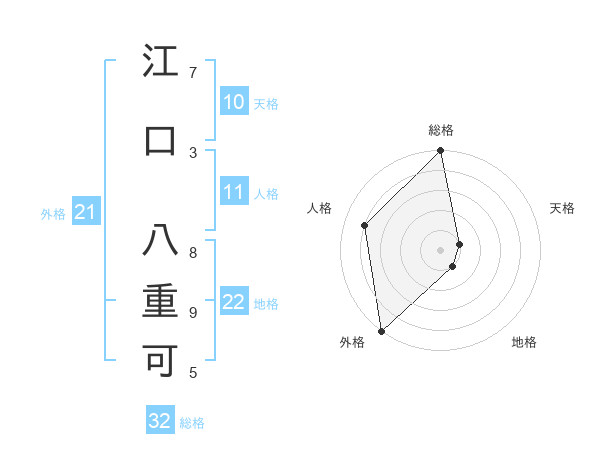 江口 八重可さんの地格は22画の1点!
